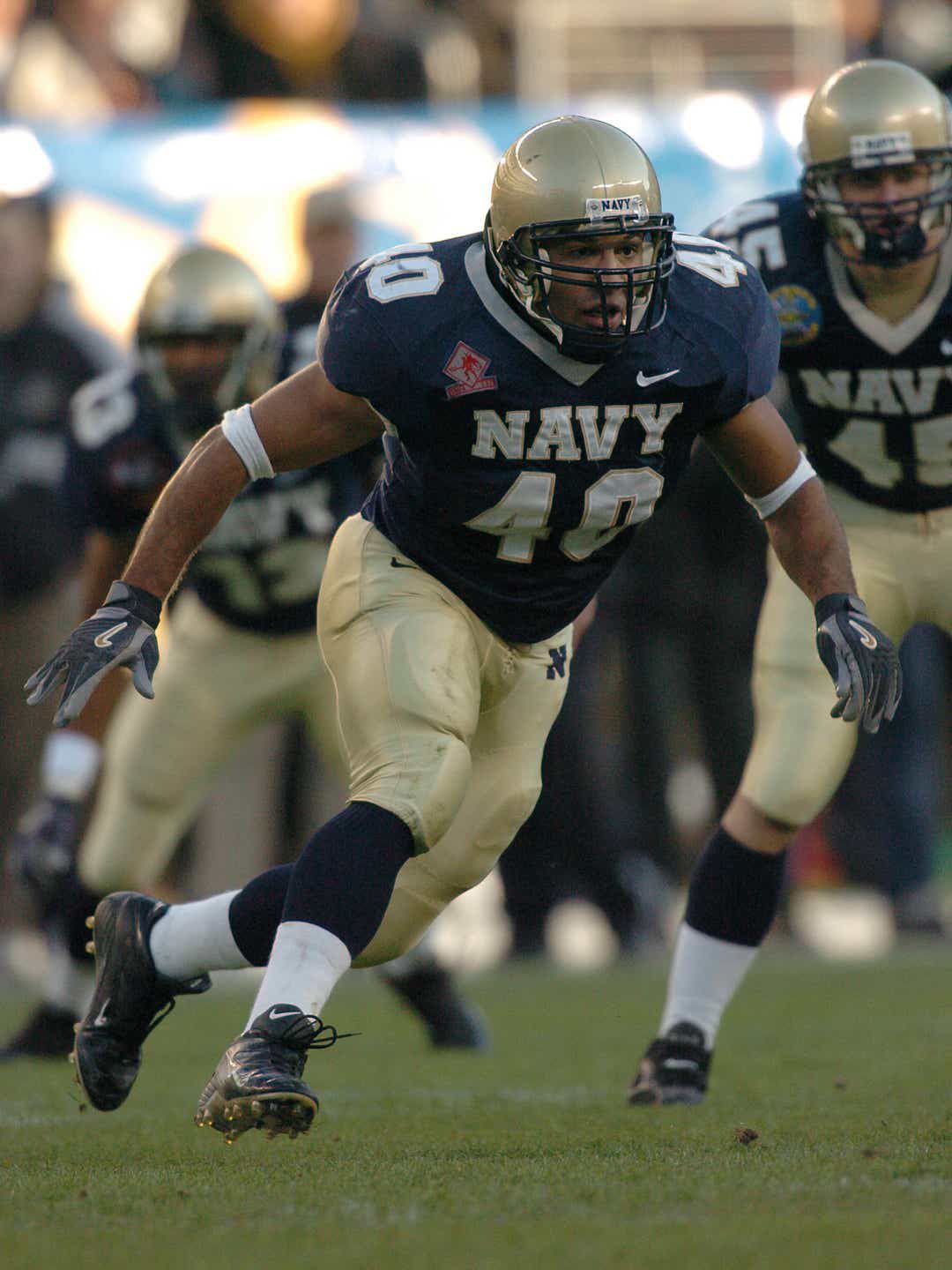 This list is definitive, and not subject to interpretation or modification. I came up with a super exclusive algorithm© that I am not going to share with you because it’s my intellectual property. No I’m just kidding. I dug into the books (read: internet) and with a little help from some of my friends on the Against All Enemies team, came up with my best assessment of the ten best athletes to play at the linebacker position at our service academies. I made a subjective judgment call on how they were racked and stacked—that’s how lists like this work. Just enjoy the ride. If you think I am wrong about something, I’d love to hear your opinion about who deserves to be put where, and why.